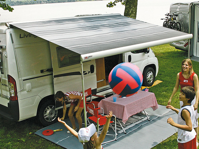 房車遮陽棚是安裝在車體外部可以伸縮的棚子,首先的作用是遮擋陽光,阻擋紫外線,在炎熱的夏天帶來一絲涼意;在下雨天,也是一個(gè)既可以擋雨又可以呼吸新鮮空氣的好地方;同時(shí)遮陽棚也是一個(gè)擴(kuò)展的室外客廳,在營地駐扎的情況下,打開遮陽棚,擺上桌椅板凳,喝茶聊天、做飯烤肉不亦樂乎。比較知名的遮陽棚是意大利Fiamma菲亞瑪