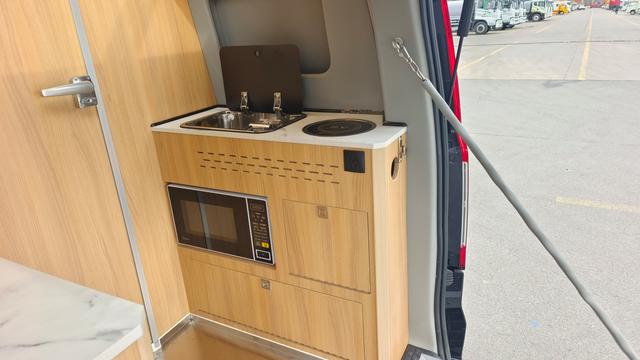 輕推沙發(fā)床中間的門(mén),內(nèi)部乾坤一覽無(wú)余,車(chē)輛尾部巧妙地嵌入了廚房與衛(wèi)生間的設(shè)施,仿佛是家中的私密天地,左側(cè)的吧臺(tái)設(shè)計(jì),既可在沐浴時(shí)放置洗漱用品,又可在烹飪時(shí)作為臨時(shí)操作臺(tái),實(shí)用又貼心。