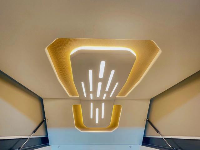 而當(dāng)我們需要休息時(shí),只需將車(chē)頂輕輕升起,一張長(zhǎng)2米、寬1.2米的舒適雙人床便呈現(xiàn)眼前,睡下兩個(gè)成年人綽綽有余,讓旅途中的我們盡享安穩(wěn)甜夢(mèng),至于用電問(wèn)題,您大可放心,這款車(chē)搭載了400Ah的鋰電池,充足的電量確保了我們一整晚的舒適使用。