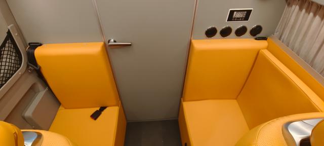 駕駛室區(qū)域給人的第一眼的感覺(jué)就是比較豪華鮮艷,儀表臺(tái)以及方向盤(pán)全部采用棕色桃木鑲嵌和米色皮革的搭配,低調(diào)又不失豪華,這種顏色搭配其實(shí)更適合年輕人,而座椅則是采用的黃色高級(jí)皮革包覆,在駕駛室里座椅的顏色是最為顯眼的,主副駕座椅還帶隱私窗簾,雖然看起來(lái)這款車(chē)比較適合女生駕駛,但是男生駕駛也是可以的,而在路上行駛的時(shí)候讓我們的心情愉悅和舒適。